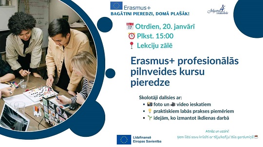8.-11.klases skolēn, Tev ir iespēja iesaistīties Erasmus projekta aktivitātēs! Pieteikšanās pagarināta līdz 2026.gada 14.janvārim.