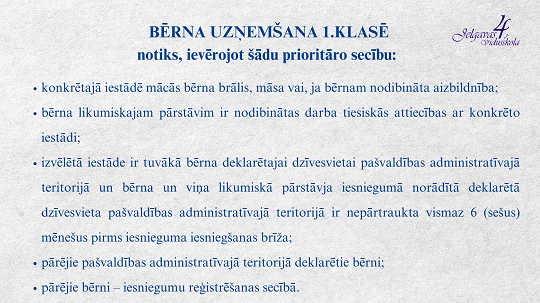 - Bērnu pamatizglītības ieguvei 1. klasē var pieteikt ne vairāk kā divās iestādēs.