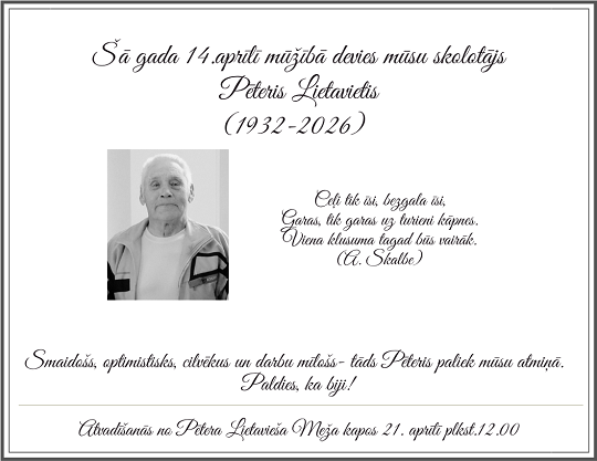 Aicinām izveidot īsu, aptuveni 5 sekundes ilgu video vertikālā formātā, kurā, ar rokām metot sniegu gaisā, tiek izteikts novēlējums skolai tās dzimšanas dienā. Video lūdzam iesniegt līdz svētdienas (11.01.) plkst. 20.00 šeit
